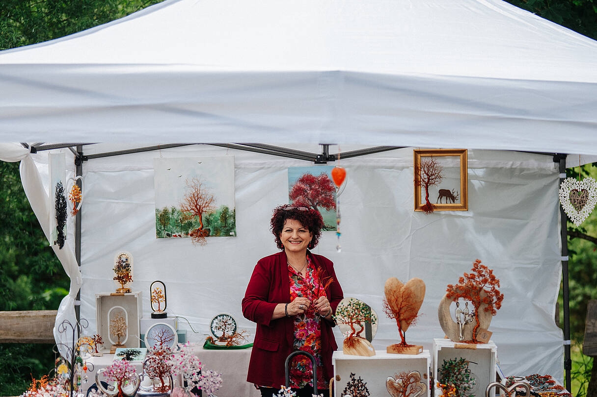 Unser Kunsthandwerksmarkt findet 2026 an beiden Tagen statt und ist ein echter Geheimtipp für alle, die auf der Suche nach einzigartigen Kunsthandwerksstücken sind. Bei über 20 heimischen Kunstschaffenden findet ihr alles, was euer Herz begehrt: Von regional produzierten Köstlichkeiten, über einzigartige Schmuckstücke bis hin zu Dekorativem für Haus und Garten.